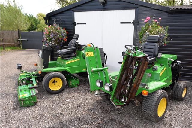2009 John Deere 900 Triple Cylinder Mowers, both road registered with Lighting Kits, 2WD or 4WD, Diff lock,Yanmar 27hp diesel engine, Power Steering, Hydrostatic Transmission, they only weigh 800kgs, they are a professional machine used by councils and contractors, easily transportable, One has Flashing beacon, both these mowers are very clean, they only have 900 and 1100 hours on both, any questions 07768 840230, delivery £1 per mile one way, all prices plus vat, Price is for one, NOW SOLD