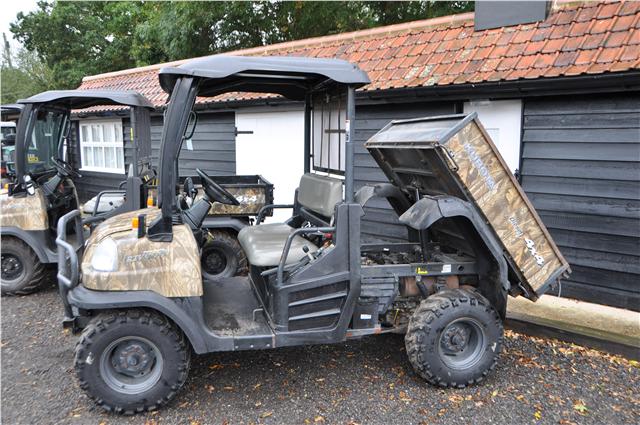2009 Kubota 900 RTV Road Registered off road vehicle in Real Wood Camo Design, 2wd or 4wd, Hydraulic Tipping Butt, Good Tyres, Glass Screen and Roof, 1600 hours, price is plus vat, any enquiries 07768 840230