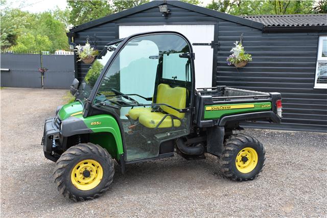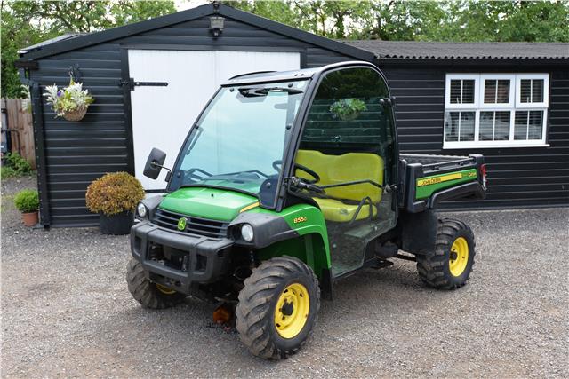 2011 John Deere Gator 855D off road utility vehicle, Full Cab with Glass Windscreen and Glass Doors, Bench Seat, 2WD or 4WD, Diff locks, Yanmar 3 cylinder diesel engine, Tow Ball, only done 1200 hours, any enquiries 07768 840230, delivery £1 per mile oneway, all prices plus vat, could be removed anytime as advertised elsewhere