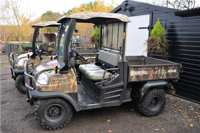2012 Kubota RTV900 Utility Vehicle in Full Camo Livery, 2WD or 4WD, Diff Locks, Glass Screen and Wiper with Moulded Camo Roof, Hydraulic Tipping Butt, Variable Hydraulic Transmission, Power Steering, 3 Cylinder Kubota Diesel Engine, Bull Bar and Tow Bar, Full Lighting Kit Road Registered with V5, any enquiries 07768 840230, Delivery Arranged for a £1 per mile one way, All prices Plus Vat, Also available a 2010 Kubota RTV900 in Camo road registered for £5495