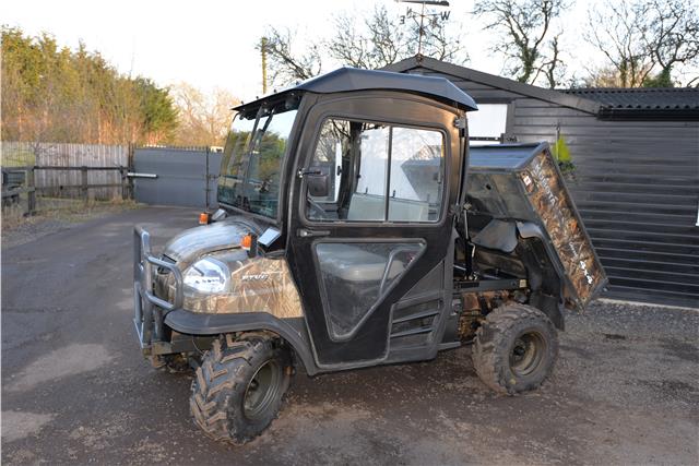 2012 Kubota RTV900 in Camo Livery with full Cab, 4WD, Diff Lock, Cab Heater, Power Steering, Hydraulic Tipper, Bull Bar ,Tow Ball, Variable hydraulic transmission, nice clean machine, Road registered with V5 one owner, any enquiries 07768 840230, delivery £1 per mile one way, all prices plus vat