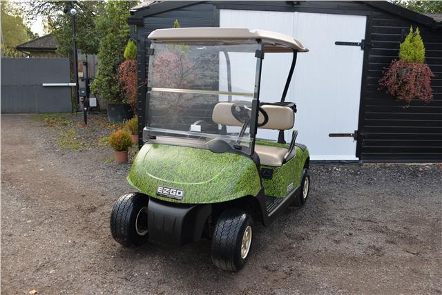 2014 EZGO RXV 48 volt Electric Golf Buggy in Excellent Condition, Commercially Wrapped in Vehicle Grade Vinyl to look a little Different and Stand out in the Crowd without looking Flash, this is the last one out of 6 that have been wrapped and they have gone to Caravan parks – Leisure Facilities and even golf courses, On board 240 Volt Charger that just plugs into any normal household Socket, Everything is in very Clean Condition and it is Quite Fast, this is one of the new ones with Electric Braking, Their is no VAT to pay on this machine, Any enquiries 07768 840230, Delivery arranged at a £1 per mile oneway