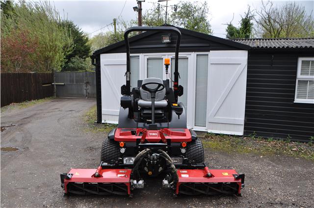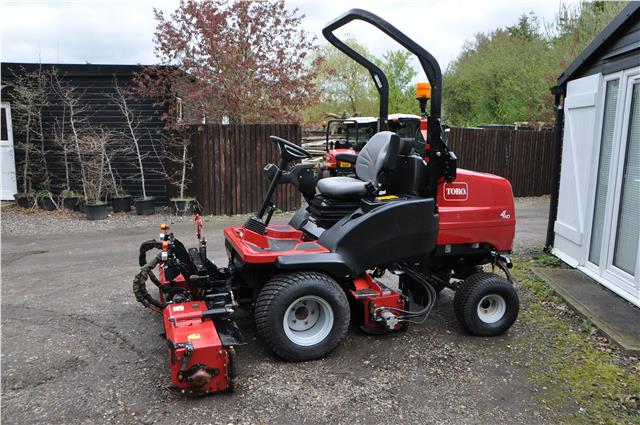 2014 Toro LT3340 Triple Cylinder Ride on Mower, 4WD with Diff lock, Folding ROPS with Flashing Beacon, Suspension Seat with Arm Rests, Adjustable Steering Column, Power Steering, Hydrostatic Transmission , Kubota 4 Cylinder Diesel Engine producing 35hp, 2900 hours, Each cutter head can be controlled individually, Full Lighting Kit, Road Registered, Good Cylinders and Bottom Blades, Brand New Wheels and Tyres,  Road Registered with V5 one owner Any Enquiries 07768 840230, Delivery Arranged from £1.50 per mile on way, All prices Plus Vat