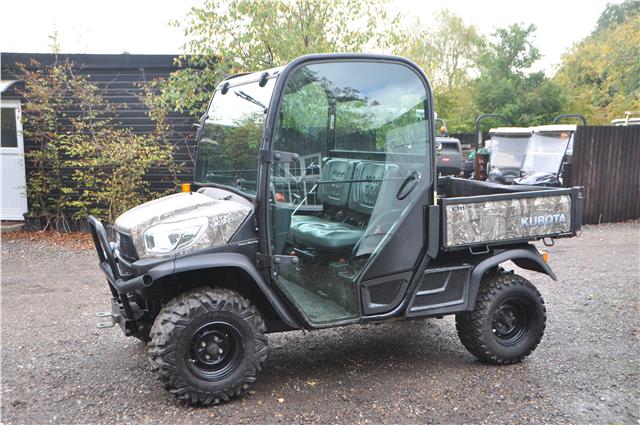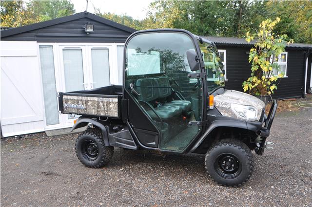 2018 Kubota RTV X900 Utility Vehicle with Full Glass Cab, Camo Livery, 2 Seats , Glass Screen and Wiper, Cab Heater, Full Lighting Kit and Road Registered, Variable Hydraulic Transmission Low – Medium – High and Reverse, 4WD, Diff Lock, Hydraulic Tipping Butt, Power Steering, Bull Bar and Tow Pin front and Rear, 3 Cylinder Kubota Diesel Engine with only 1200 hours, Fully Serviced with Filters and Oil, Any Enquiries 07768 840230, Delivery From £1.50 per mile one way, All Prices Plus VAT
