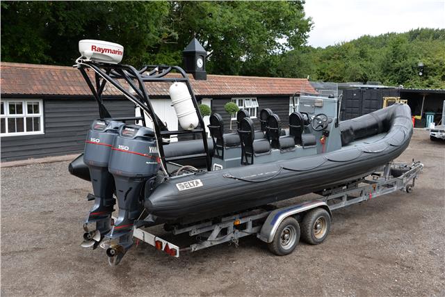 Delta Rigid Inflatable Boat, 7.8 Meter X Range with Twin 2003 Direct Injection Yamaha 150hp Counter Rotating Engines, Twin Fuel Tanks, Twin Batteries, Twin Oil Tanks, Garmin Depth Sounder, Raymarine Plotter Set in Double Consul with Screen and Hand Rails, A Frame with Nav Lights, Aerial, Siren, Six Fixed Seats with under seat Storage and Foot Straps for Driver and Co Pilot, Manual and Elecric Bilge pumps, Radar Deflector, Search light, Anchor and Rope, Hypalon Tubes with thick Rubber Over cladding for Protection Down the Sides, No Blue Light, This is an Ex Police Diving boat which was Bought Brand New Direct from Delta in 2000 and they was the only owners until now, very Rare to come on the Open Market in this Condition, We had to remove the Police Signs but you can still see them on the tubes, The Boat is in Excellent Condition and Would be in Excess of £130,000 + vat today, Comes on 4 Wheel Multi Roller Trailer that does the job perfectly, Will Sell Boat without engines, Please check this boat out as its not the norm, they are only used by Commercial outfits like the Police – Military – Coastguard etc, Hence its plus vat, Its no good mentioning what this boat would be good for as theirs nothing it won’t do, any enquiries 07768 840230, Delivery arranged at a £1 per mile one way, All Prices Plus VAT