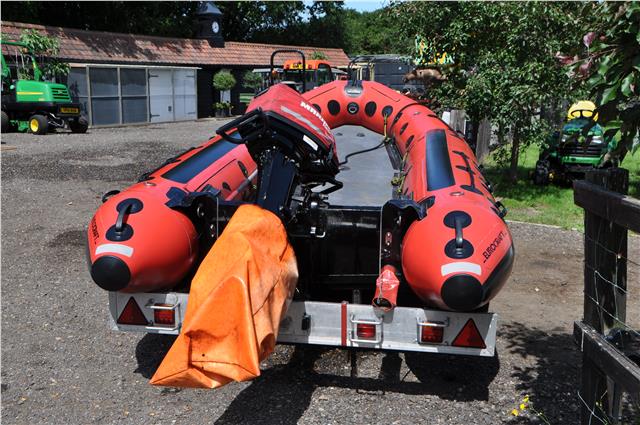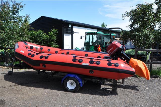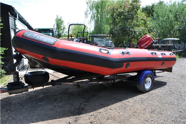 Inflatable Rib Boat Ex Fire Brigade with Trailer and 30hp Mariner Outboard Engin