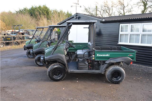 Kawasaki Mule 4010 , power steering, 3 cylinder diesel engine, manual tipping butt, Mauser roofs, bench seat, has 1450 hours, road registered, no screen 2 or 4 wheel drive, diff locks, low and high gearing, ideal park or farm, any enquiries 07768 840230, delivery arranged at a £1 per mile one way, all prices plus vat