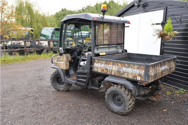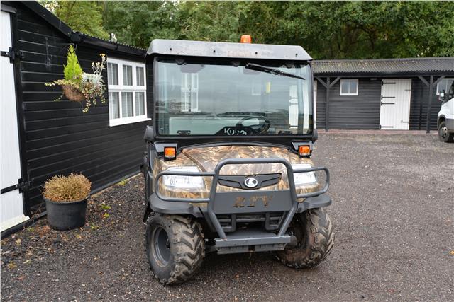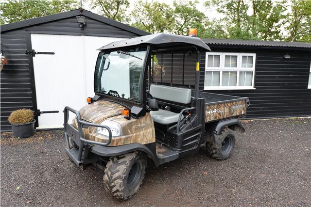 2011 Kubota RTV900 in Camo Livery, 3 Cylinder bullet proof Kubota Diesel engine, Power Steering, Hydraulic tipping butt, Diff Locks, 2WD or 4WD, High – Medium – Low and reverse gears, just select and go, Bench Seat, Glass windscreen with wiper and metal Roof, Full Lighting Kit, Tow Ball , Bull Bar, Flashing Beacon, nice clean machine, any enquiries 07768 840230, Delivery £1 per mile one way, All prices plus vat, NOW SOLD