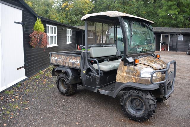 2014 Kubota RTV900 off road Utility Vehicle, Half Cab with Camo Colours including Roof, Glass Screen and Windscreen wiper, Bench Seat, 2WD or 4WD, Diff locks, Variable Hydraulic transmission, 1900 hours, Kubota 3 Cylinder Diesel Engine Power Steering, Bull Bar, Tow Ball, Hydraulic Tipping Butt, Full Lighting Kit with Road Registration and V5, any enquiries 07768 840230, Delivery arranged for a £1 per mile one way, All prices plus VAT, see our other items