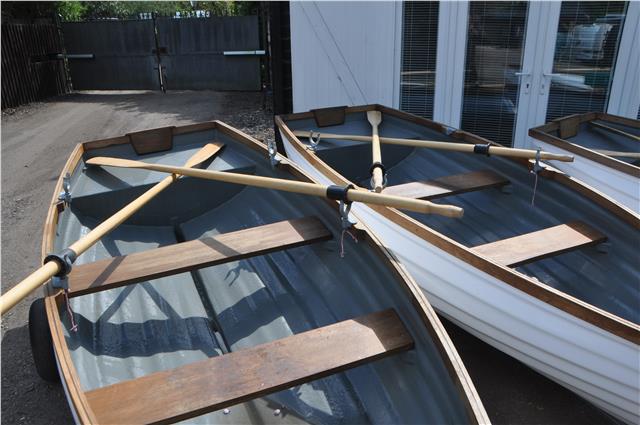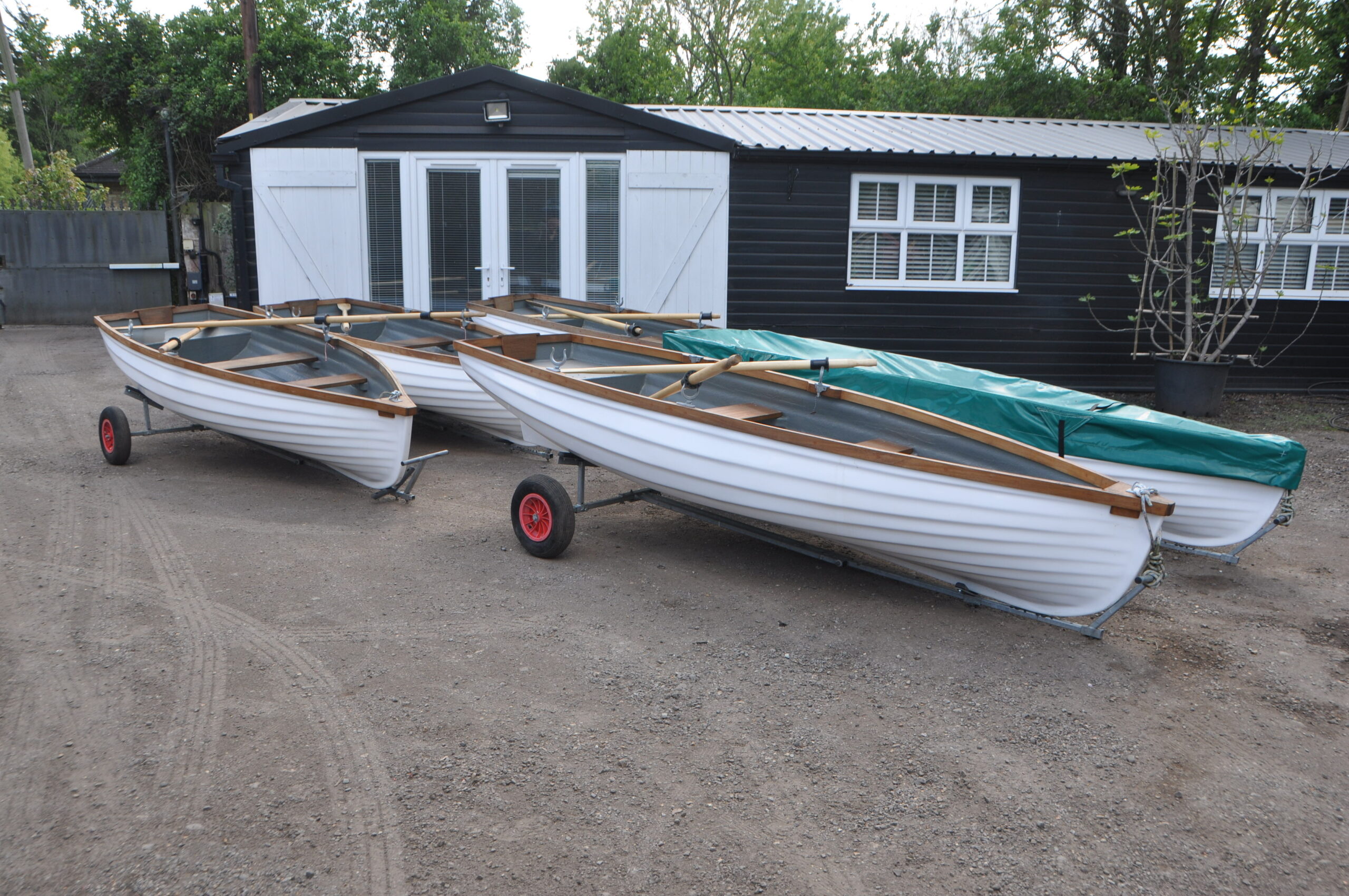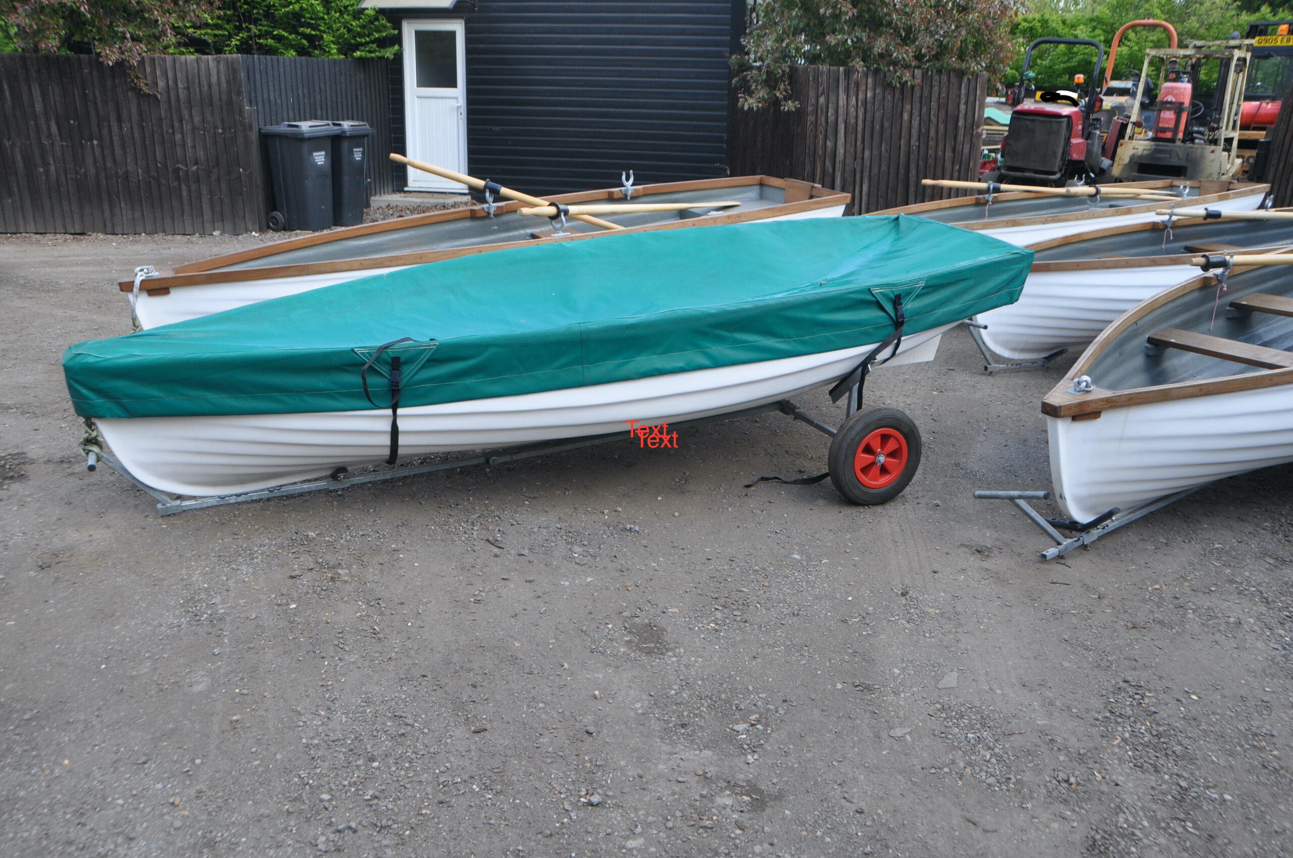 Rowing Boats x 5, Fibreglass with Clinker wood effect, All Come with Full Covers Oars and Launching Trolleys, price is for all 5 with 9 spare Oars, They are 10′ long and ideal for 4 people, UK Made and in excellent condition, Ideal Business opportunity for Hiring out, All prices plus VAT